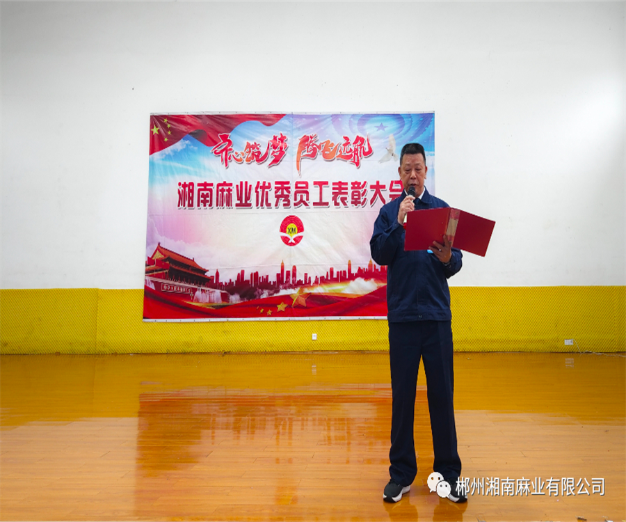 為了營造良好的生產(chǎn)工作環(huán)境和學(xué)習(xí)氛圍,進(jìn)一步激發(fā)廣大干部員工向先進(jìn)學(xué)習(xí)的熱情,促進(jìn)公司各項(xiàng)工作再上一個(gè)新臺階,郴州湘南麻業(yè)有限公司于4月29日上午組織召開2022年度優(yōu)秀員工表彰大會,對上一年度工作表現(xiàn)優(yōu)異、有突出貢獻(xiàn)的員工予以表彰。