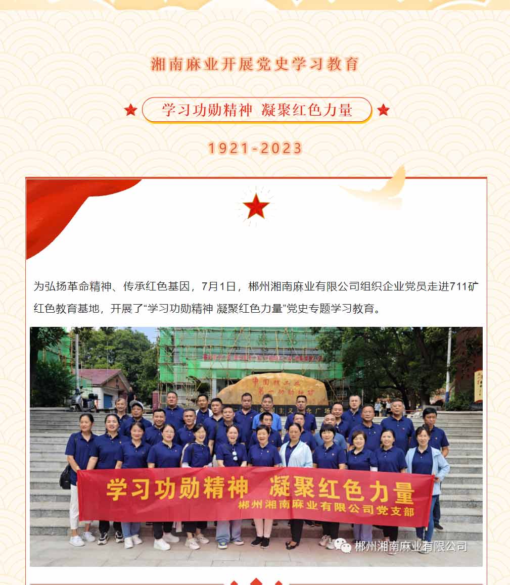 • 學習功勛精神 凝聚紅色力量——湘南麻業(yè)開展黨史學習教育