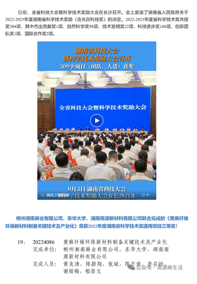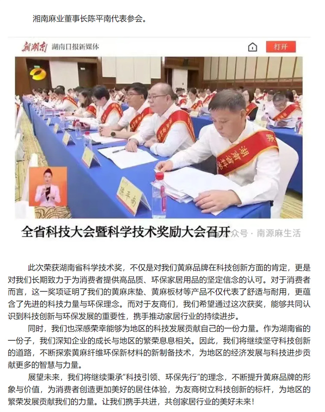 • 科技之光!黃麻品牌榮膺湖南省科技獎(jiǎng),共筑綠色家居夢(mèng)